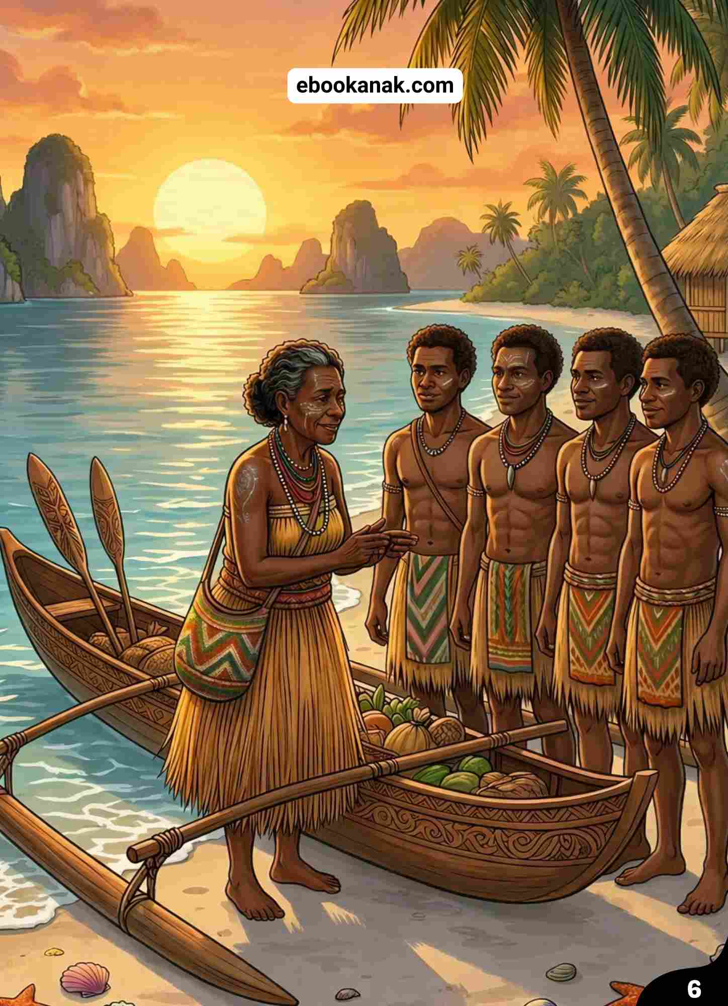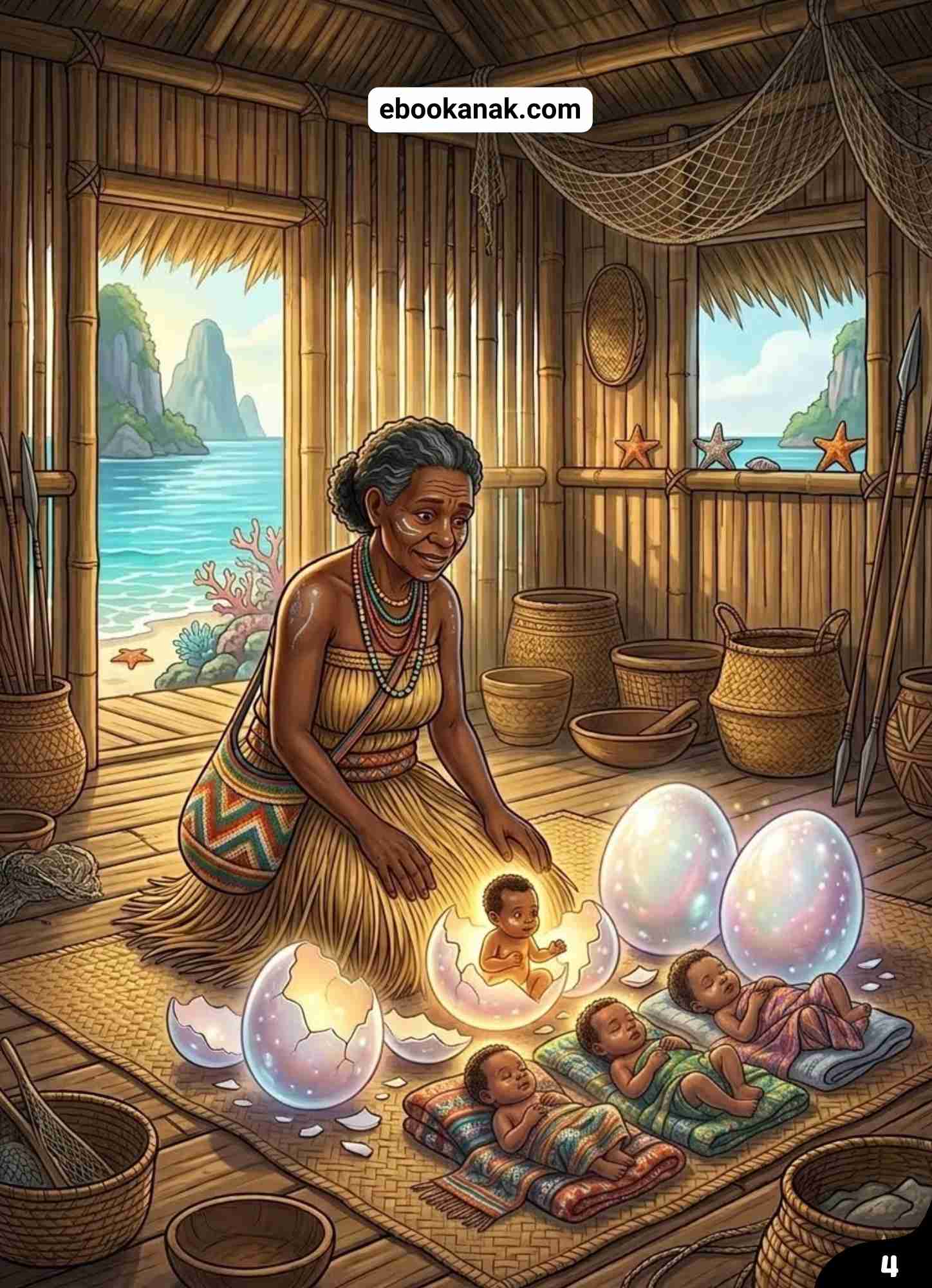 Empat anak laki-laki sangat kuat dan cerdas. Mereka pandai berburu ikan, mendayung perahu, dan mempelajari kehidupan laut.