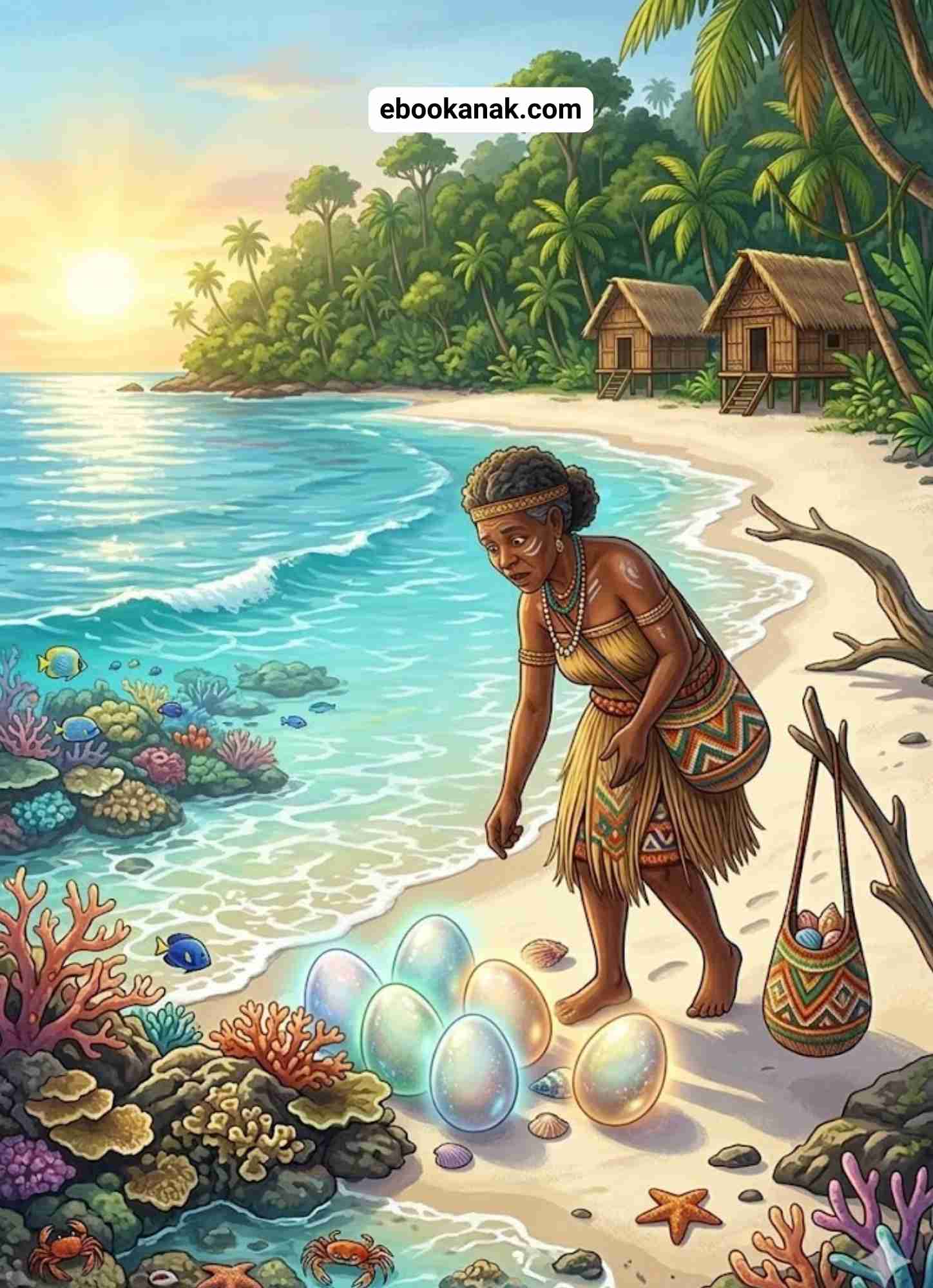 Dahulu kala, di sebuah kampung kecil di pesisir Papua Barat Daya, hiduplah seorang perempuan sederhana bernama Mamle. Ia tinggal sendirian di sebuah rumah kayu kecil yang menghadap ke laut.