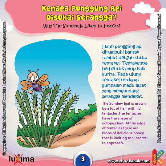 Pada ujung tentakel terdapat gumpalan madu lezat yang mengundang serangga mendekat.