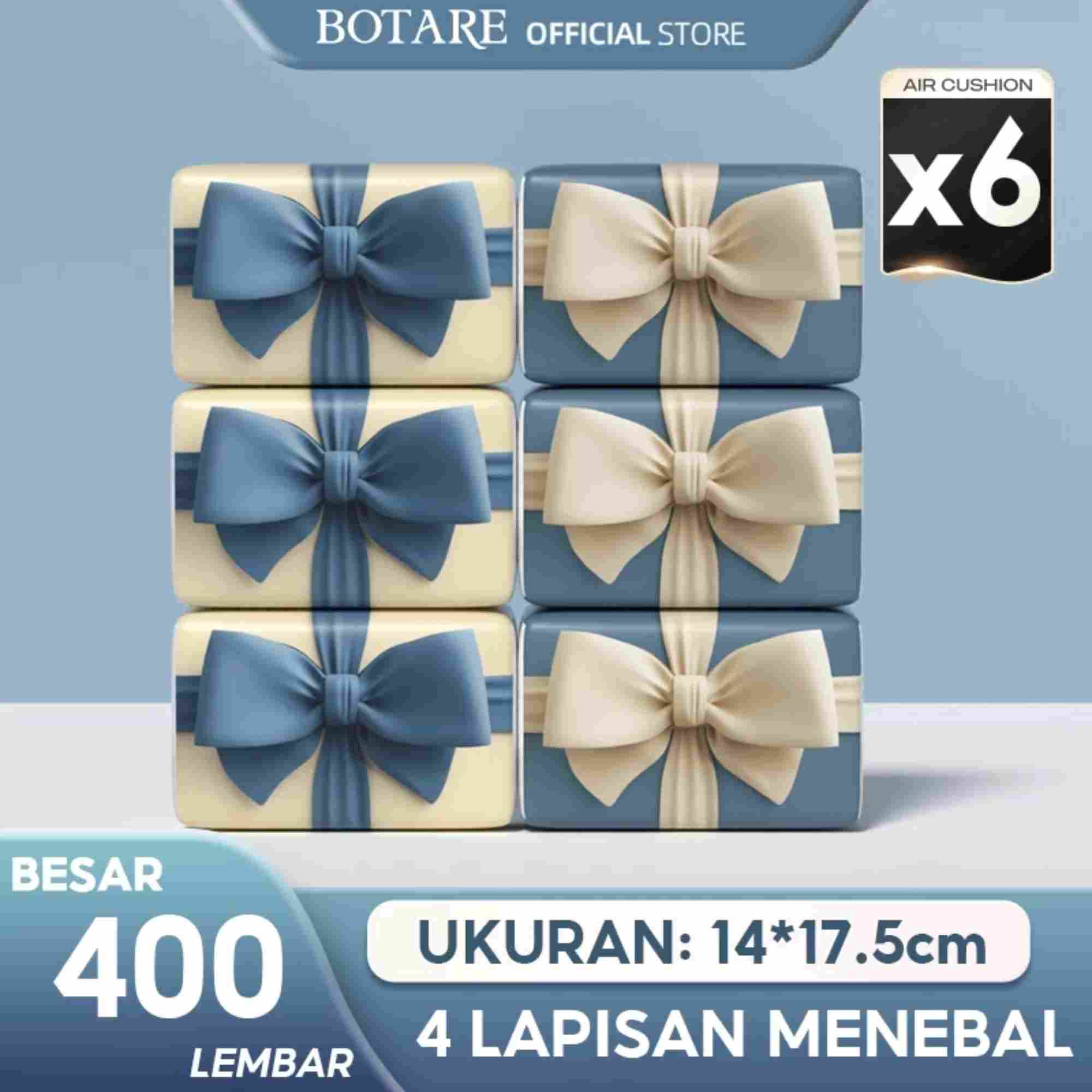 (6PCS) Botare Air-Cushion Tisu Muka Deluxe Lembut 4 Lapisan 400 helai